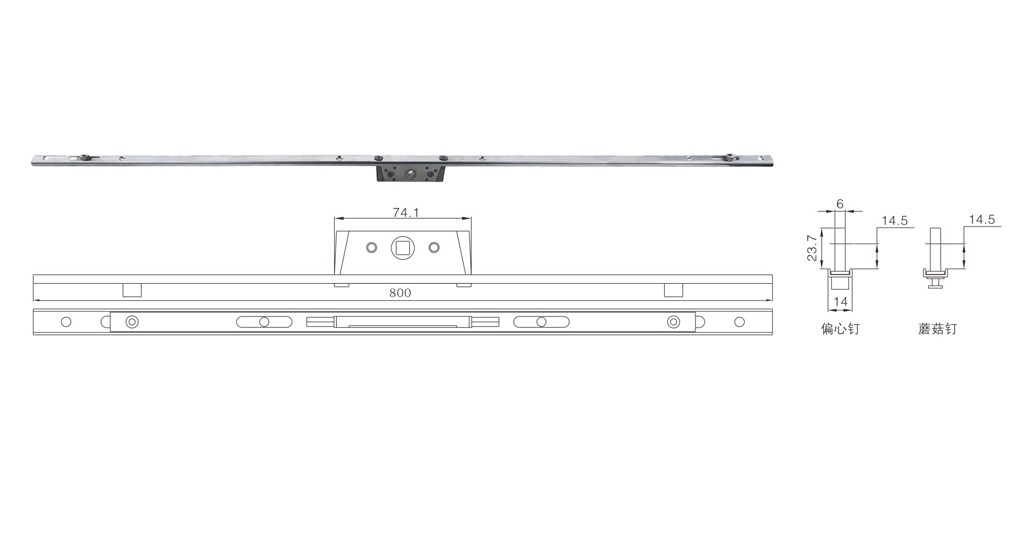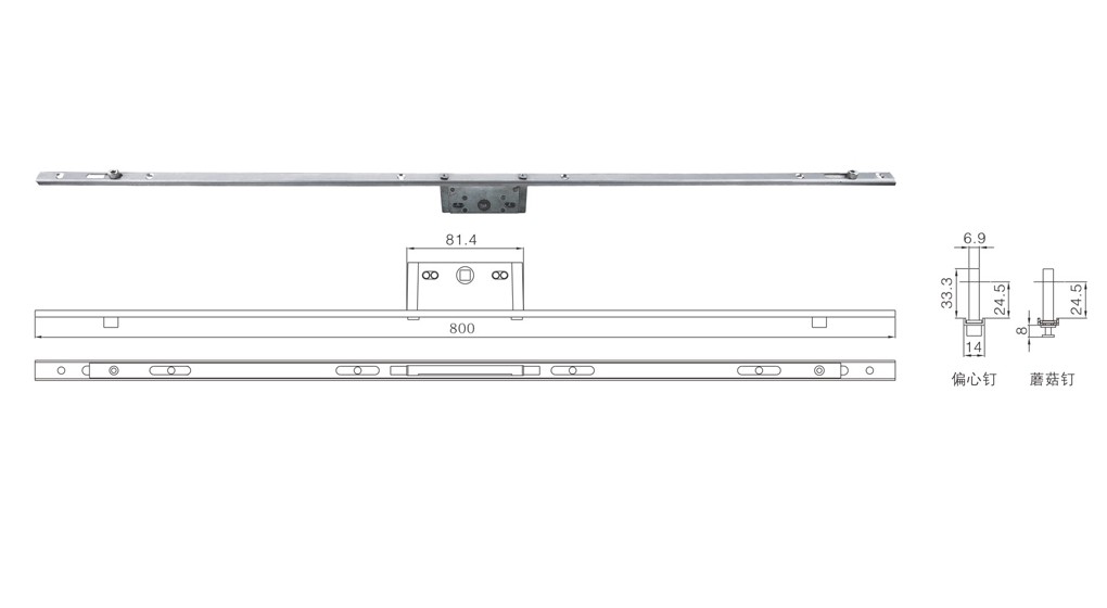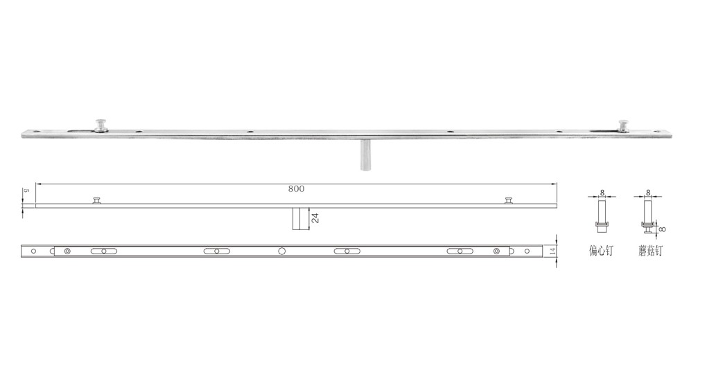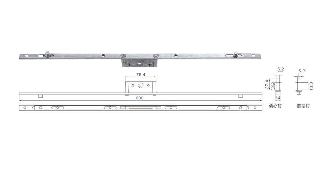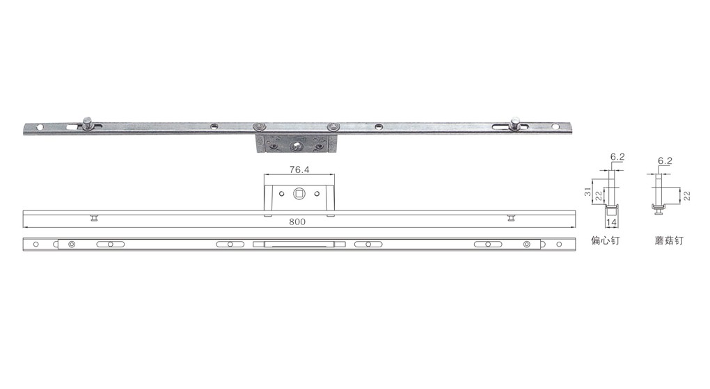 帶鎖盒單向傳動,常用于平開窗、門。偏心釘、工字釘高度可定制。