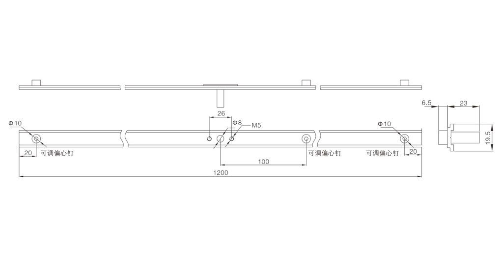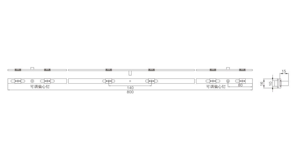 撥釘單向鋁桿,常用于20槽平開門窗上。偏心釘、工字釘高度可定制。