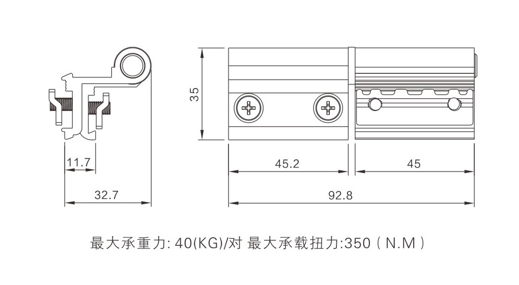 適用于20槽型材上,每對最大承重40(KG),最大承載扭力350(N.M)