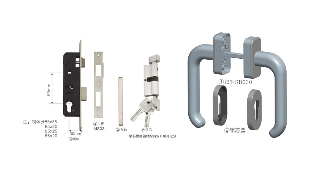 平開(kāi)門鎖,把手與鎖芯蓋分體設(shè)計(jì)。實(shí)用簡(jiǎn)潔大方。鎖芯、扣板可按客戶需求選配。