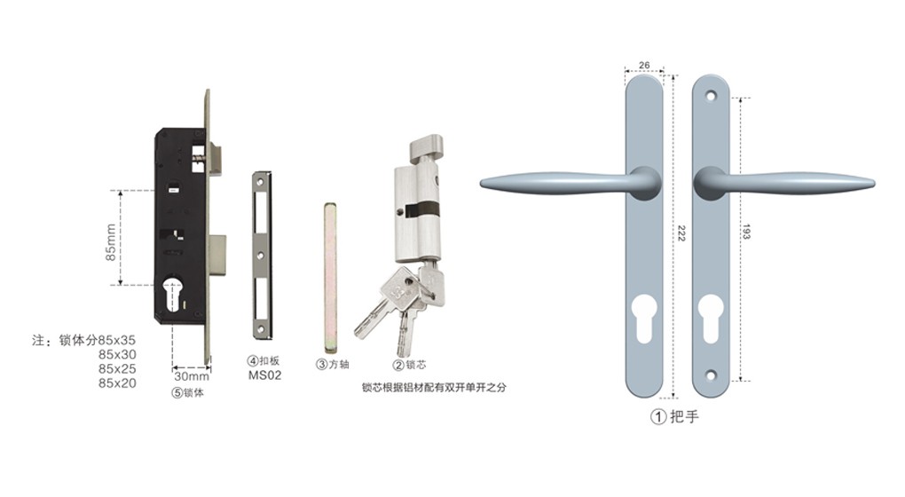 平開門鎖,實用簡潔大方。鎖芯、扣板可按客戶需求選配。